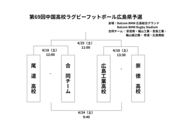 第69回中国高校ラグビーフットボール広島県予選が2026年4月18日(土)から