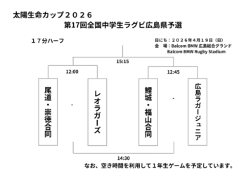 (中学生スクール)太陽生命カップ2026第17回全国中学生ラグビー大会広島県予選組み合わせについて